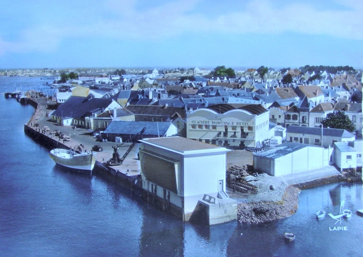 Vue aérienne de la partie sud du port, vers 1962-63 : l'abri du canot de sauvetage au 1er plan ne possède pas encore sa cale latérale.Immatriculation