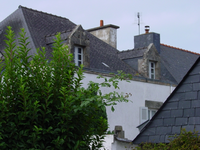 Façade postérieure, détail lucarnes en pierre de taille.Immatriculation