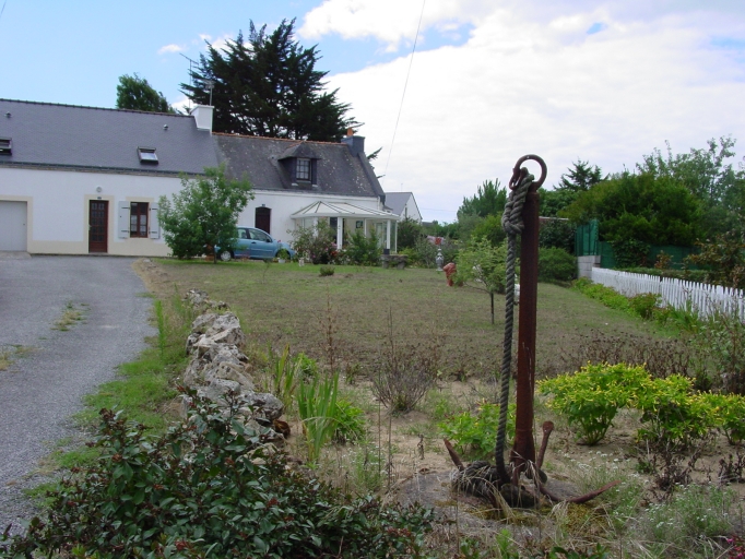 3 jardin des Chardonnerets (AE 176) : maison de pêcheurs à pièce unique vers 1910, remaniée d'une lucarne. Au premier plan : ancre dans le jardin.Immatriculation
