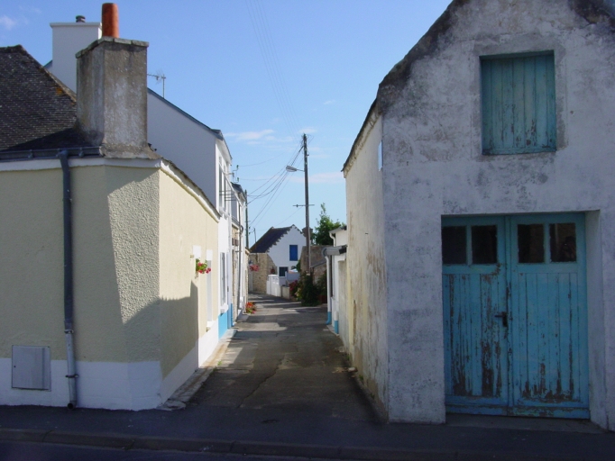 Rue des Bons-Enfants, vue nord-sud. A l'origine un ensemble de huit maisons à pièce unique avec dépendances du côté ouest de la rue. Au premier plan et au fond : deux exemples de dépendance à haut surcroît. Seconde moitié du 19e siècle.Immatriculation