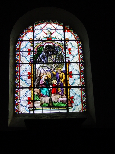 Verrières (4) baies 5, 7, 6 et 8 (verrières historiées) : Nativité de Marie ; Ascension de la Vierge ; Sainte Famille ; Couronnement de la Vierge,