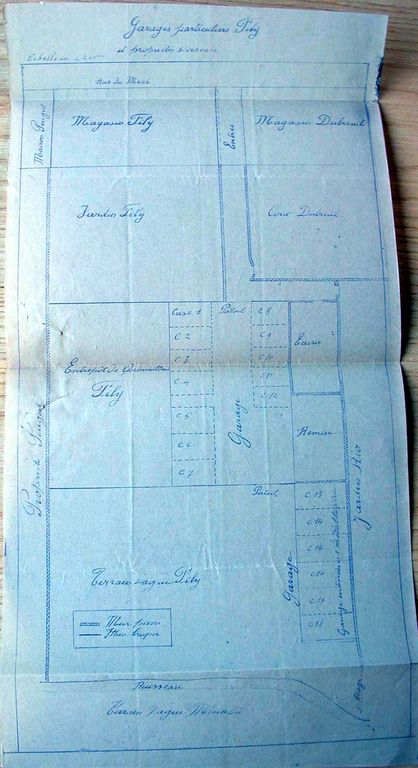 Plan de situation des garages demandés par Ferdinand Fily, propriétaire de la quincaillerie, 192?. AD Morbihan 5 M 231.Immatriculation