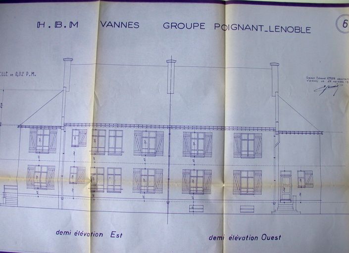 Groupe Poignant Lenoble, demi-élévations est et ouest, signées E. Gemain, 28 février 1949. Doc. OPHLM, Vannes.Immatriculation