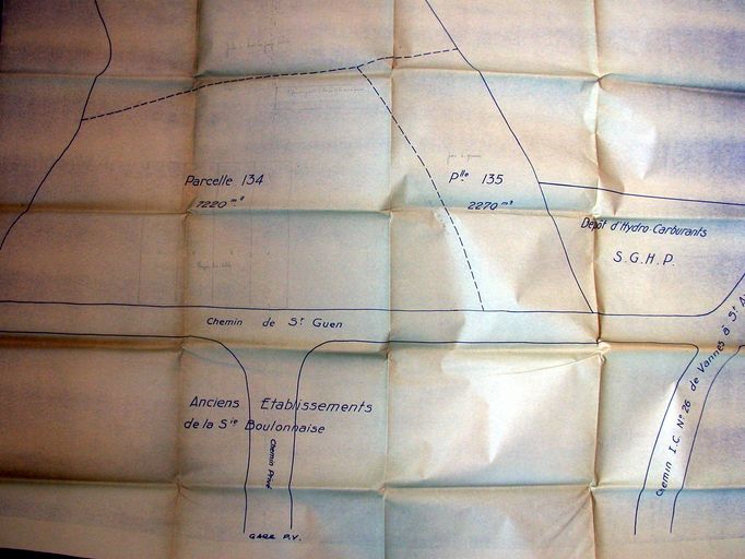 Plan parcellaire mentionnant le dépôt d'hydro-carburants. AD Morbihan 5 M 232.Immatriculation