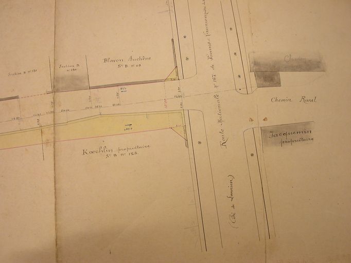 Projet de tracé d'alignement du chemin dit de Saint-Guen : embranchement de la rue Wilson, 1922. AM Vannes 1O216.Immatriculation