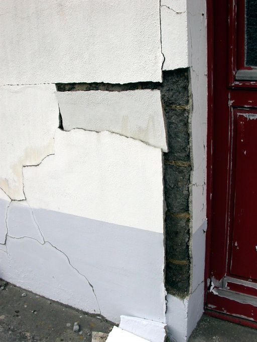 Détail du mur en parpaing de machefer.Immatriculation