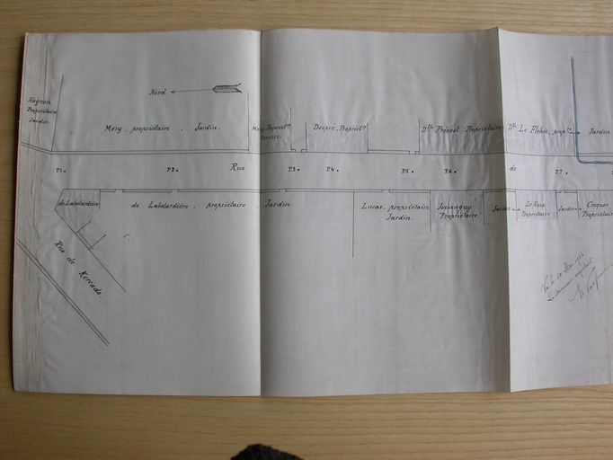 Classement de la rue de Kerfranc, plan par l'architecte de la ville Rousseau, 10 mai 1915, partie nord. AD Morbihan 3O 2181.Immatriculation