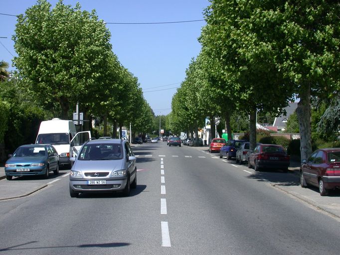 Vue vers l'ouest de l'avenue de La Marne à partir de l'école Sainte-Thérèse.Immatriculation