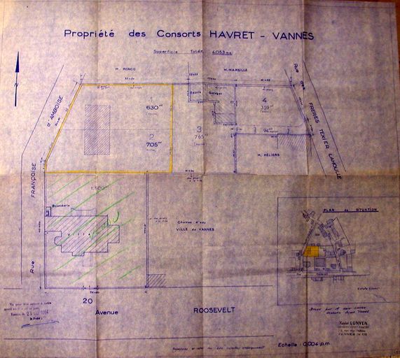 Plan du lotissement Havret approuvé le 21 octobre 1954. AM Vannes 1O221.Immatriculation