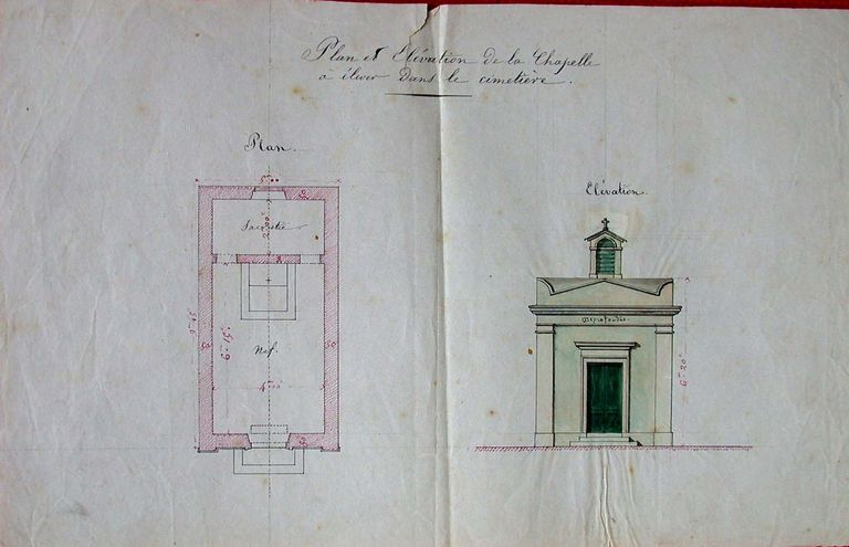 Plan et élévation de la chapelle à éléver dans le cimetière, non daté, non signé. AM, Vannes 2M201.Immatriculation