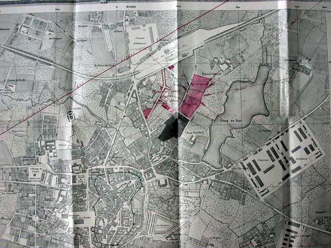 Plan Bassac, 1885 : surcharge du projet d'agrandissement du cimetière. AD Morbihan 2O 260/16. Cimetière.Immatriculation