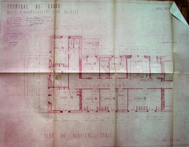 Projet d'agrandissement du bâtiment principal, par G. Caubert de Cléry, 20 février 1948. Plan du second étage. AM Vannes 1G59.Immatriculation