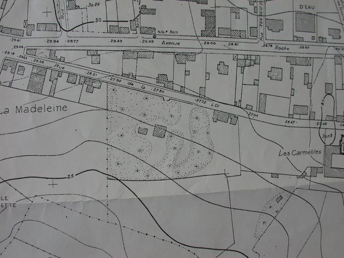 Plan de la ville par Guillerminet, Ministère de la Reconstruction, 1947 : détail avenue Hoche et rue de la Loi. AM Vannes 9Fi.Immatriculation