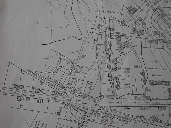 Plan de la ville par Guillerminet, Ministère de la Reconstruction, 1947 : détail. AM Vannes 9FI.Immatriculation