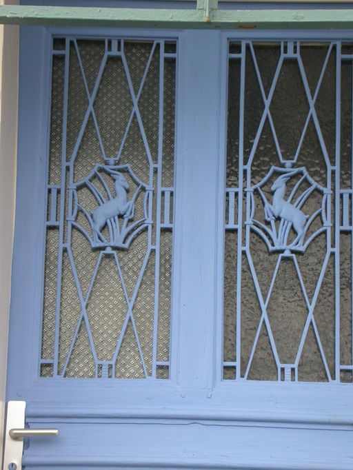 Porte d'entrée, détail de la ferronnerieImmatriculation