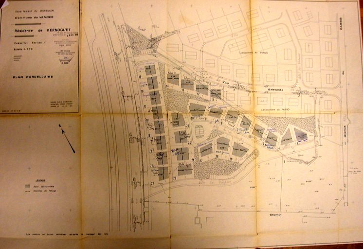 Plan de la résidence de Kernoguet, 1976 (29 lots). AM Vannes 1O221 dossier lotissement n°228.Immatriculation