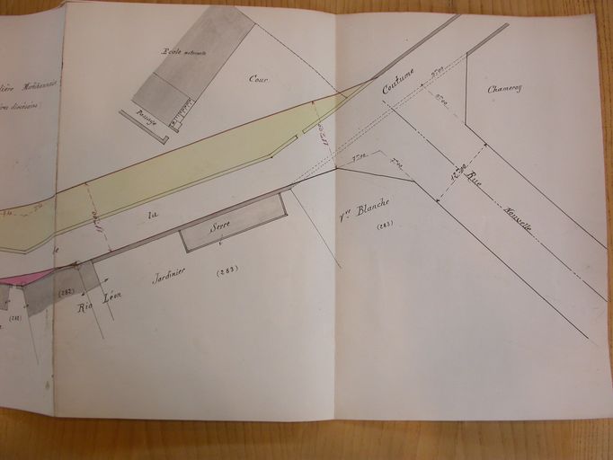 Plan d'alignement de la rue de la Coutume, 2 août 1926, partie nord : implantation du garage Chameroy. AD Morbihan 3O 2182.Immatriculation