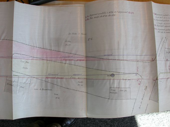 Plan des alignements à établir rue de Belair et entre la rue Foch et la rue de Bernus, plan par Rousseau, architecte de la ville, 31 août 1922. (AD Morbihan 3O 2183) : partie médianeImmatriculation