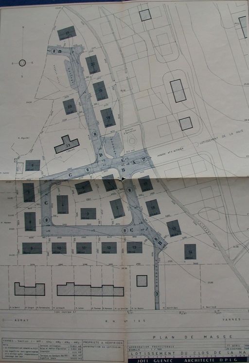 Plan général du lotissement Kerfriden, 1969. AM Vannes 1O221.Immatriculation