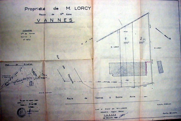 Plan du lotissement Lorcy. AM Vannes 1O221.Immatriculation