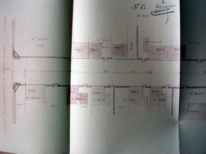 Projet de classement dans la voirie urbaine de la 2e impasse Guyot-Jomard. Plan de Thiévard, 14 octobre 1931, partie nord. AD Morbihan 3O 2182.Immatriculation