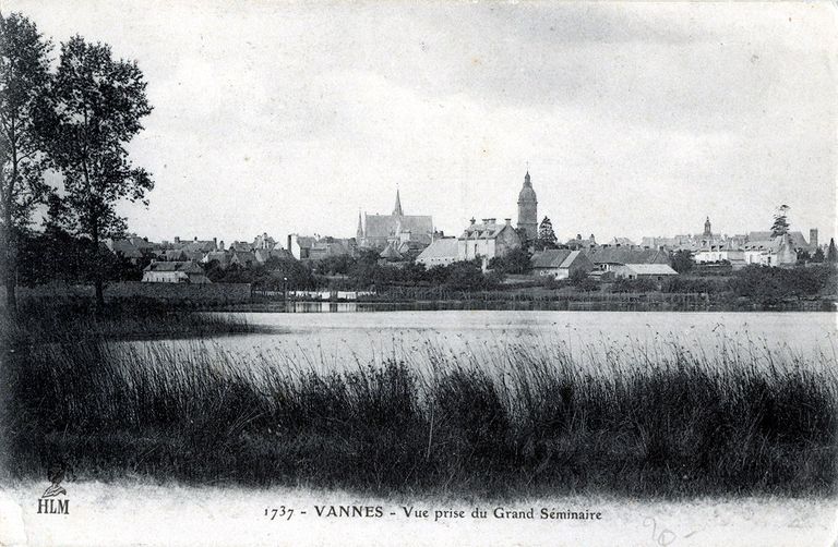 Vue de la ville prise du grand séminaire : au premier plan, manoir de Boismoreau et sa ferme. Carte postale ancienne, vers 1920 (?). Fonds privé.Immatriculation