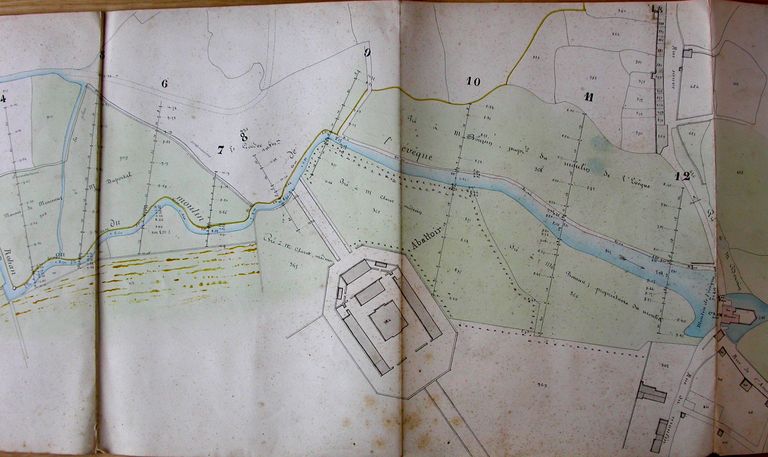 Projet de règlement d'eau du moulin de l'Evêque. Partie est. Plan, par Fréminville, 1857. AD Morbihan, S 1152.Immatriculation