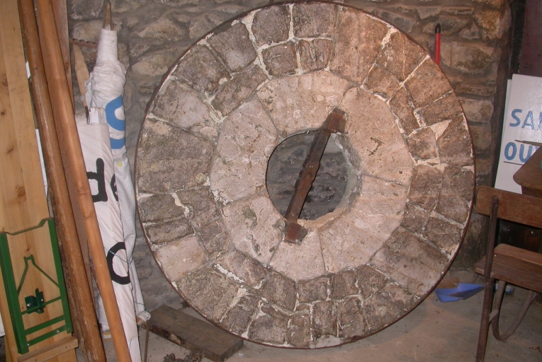 Meule en attente d'être replacée dans le moulinImmatriculation