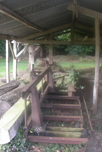 Vue générale du hangar, avec son chariot et sa scieImmatriculation