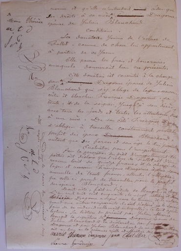 Acte notarié (verso) daté du 20 octobre 1850 : donation d'une écluse ou pêcherie au Follet (Les Hôpitaux)Immatriculation