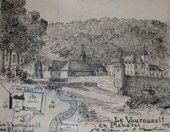 Vue générale en 1917 d'après croquis du vicomte Henri Frotier de La Messelière (AD 22)Immatriculation