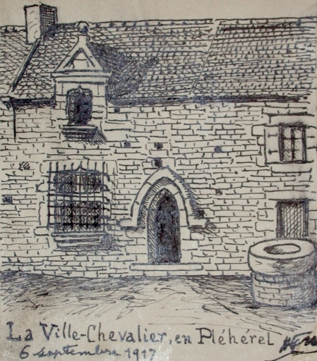 Vue générale en 1917 d'après croquis du vicomte Henri Frotier de La Messelière (AD 22)Immatriculation