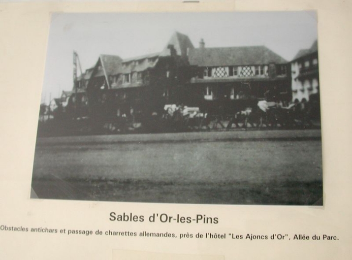 Sables-d'Or-Les-Pins : obstacles anti-chars et passages de charrettes allemandes devant l'hôtel des Ajoncs d'or (collection particulière)Immatriculation