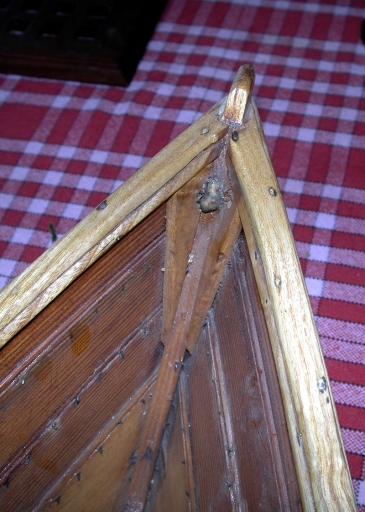 L'étrave effilée du doris (avec la contre-étrave)Immatriculation