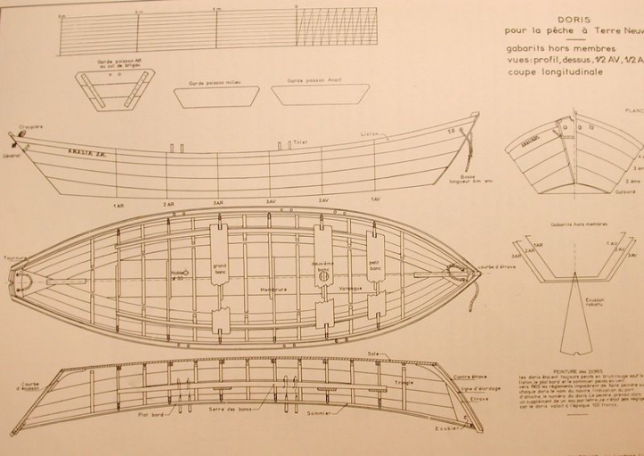 Plan d'un doris pour la pêche à Terre-Neuve (Jean Le Bot)Immatriculation
