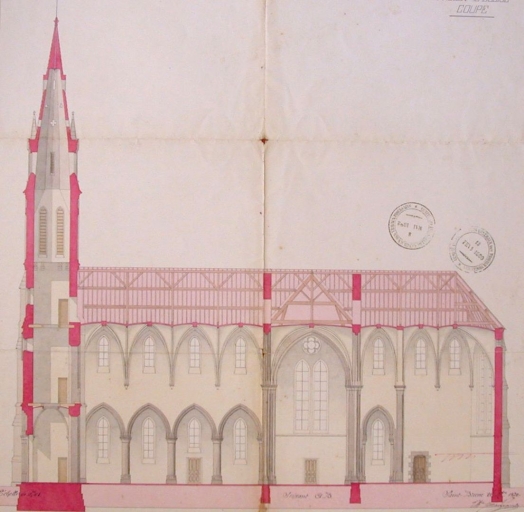 Plan du 21 septembre 1875. Eglise Saint-Pierre, coupe (Théodore Maignan, architecte / AD 22)Immatriculation