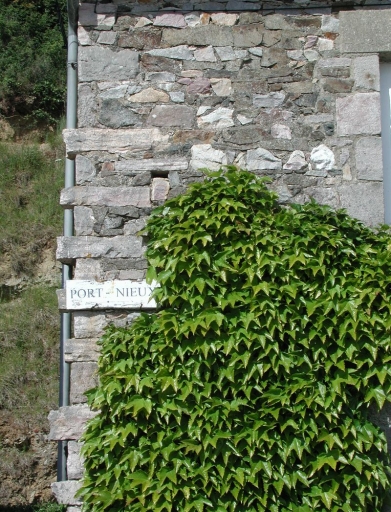 Panneau de signalisation de Port-Nieux, apposé sur un ancien magasinImmatriculation