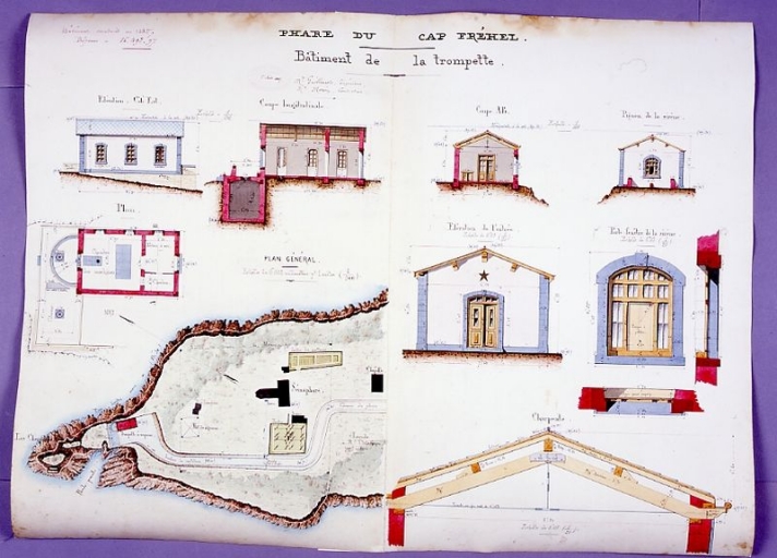 Dessin aquarellé : le bâtiment de la trompette, 1887 (AD 22)Immatriculation