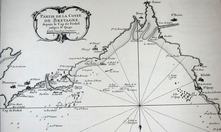 Plévenon. Carte marine depuis le Cap Fréhel jusqu'à Saint-Quay (De La Voye, Le Neptune françois, 1693)Immatriculation
