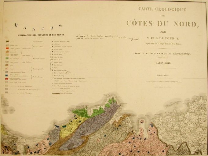Carte géologique des Côtes-du-Nord par Eugène de Fourcy, 1843 (AD 22)Immatriculation