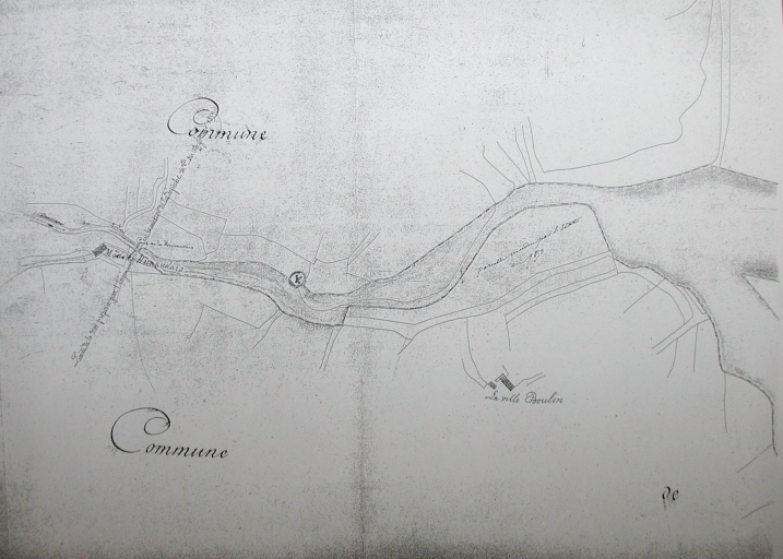 Plan : ruisseau de l'Islet : délimitation de la mer aux bouches d'Erquy, en 1855, et indication du moulin de la Hunaudaye (DDE 22)Immatriculation