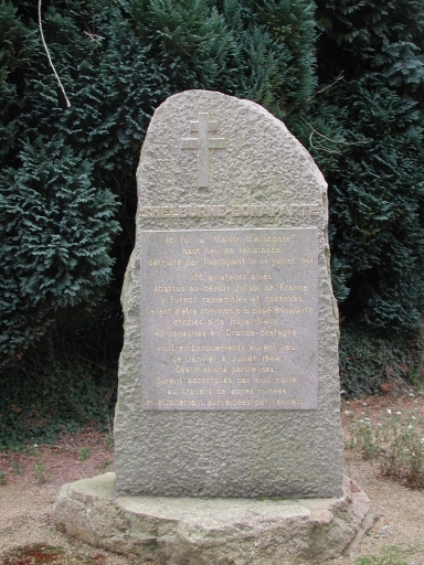 Stèle en granite dédiée au réseau Shelburn, à l'emplacement de la Maison d'AlphonseImmatriculation