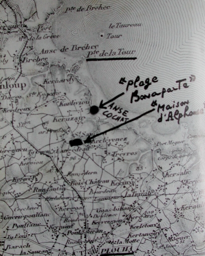 Extrait carte : situation de la Maison d'Alphonse et de la Plage Bonaparte (collection particulière)Immatriculation