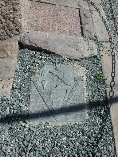 Première plaque commémorative gravée et sculptée en hommage au réseau Shelburn et à la corvette britannique 503 (équipage péri en mer), par l'abbé Jean Boulbain, le 23 juin 1946, associée en 1994 à la stèleImmatriculation