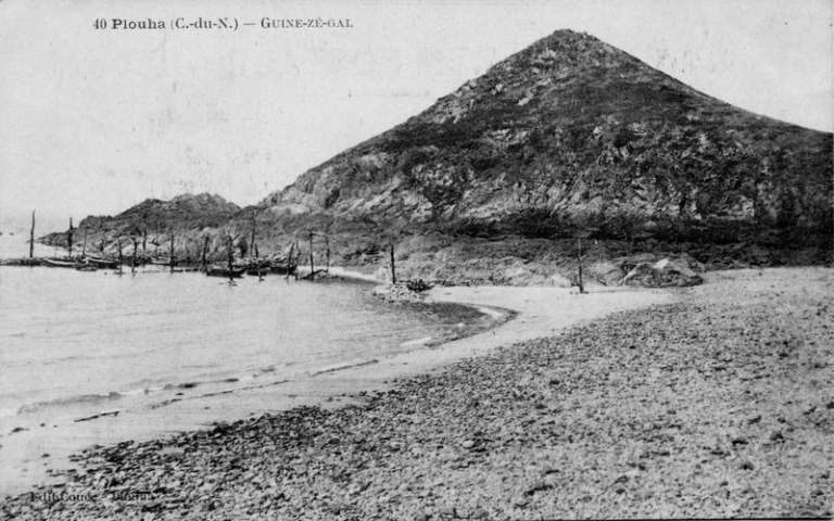 Le port de Gwin Zégal, au début du 20ème siècle, avec ses premières rangées de pieux d'amarrage (collection particulière)Immatriculation