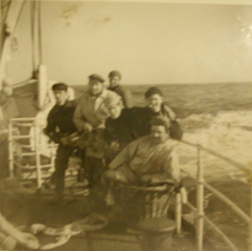 Equipage sur le gaillard d'avant d'un chalutier Terre-Neuvier (collection particulière)Immatriculation