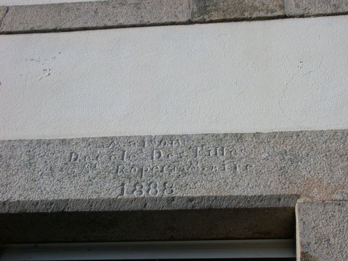 Vue détaillée (linteau portant la date et la destination de l'édifice)Immatriculation