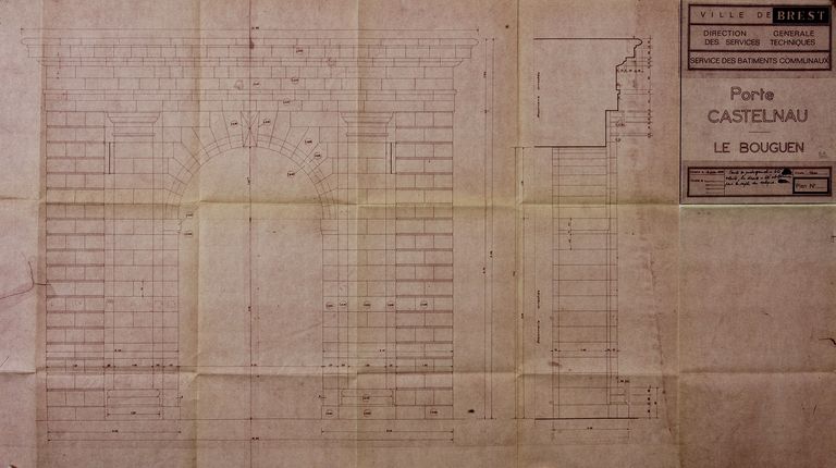 Relevé de la porte Castelnau, Le Bouguen par la Direction Générale des Services Techniques de la ville de Brest, juin 1974Immatriculation