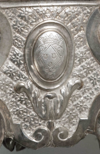 Chandelier d'autel : détail armoiries sur la baseImmatriculation