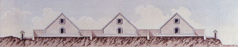 Elévation des trois magasins à poudre dits "poudrières maritimes" de l'île des Morts, Travaux Maritimes, 1813Immatriculation